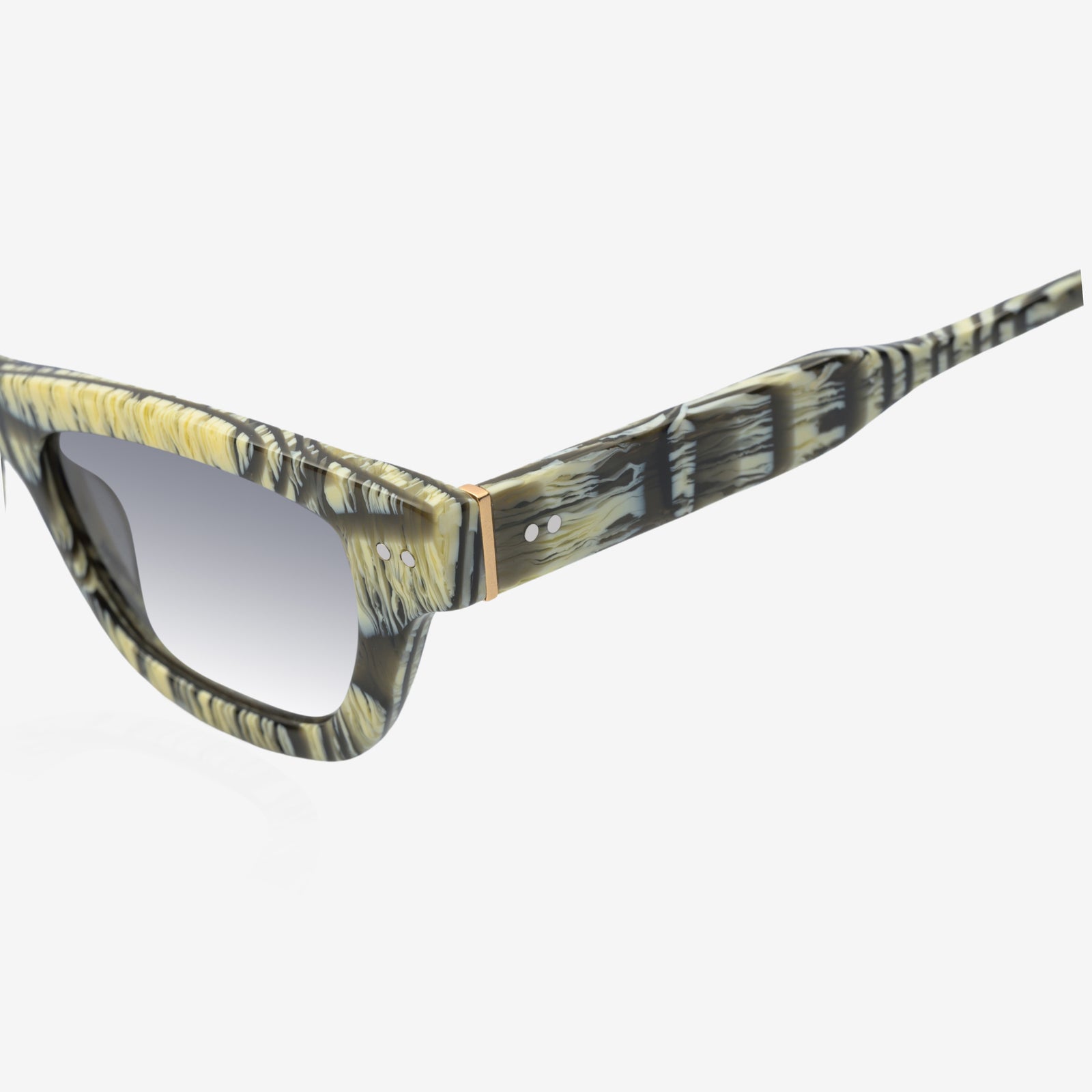 Pierre is an hybrid design of stainless steel and acetate which adds an extra layer of luxury to the product. The stainless steel portion offers robustness, structural integrity, and a modern, sleek appearance, while the acetate portion enhances the overall feel of the sunglasses. While designing this pair we wanted to ensure a smooth and comfortable fit when these sunglasses rest on your face. The acetate material has a natural warmth and softness, making it incredibly pleasant to wear. It also adds a touch of opulence to the eyewear, creating a harmonious balance between functionality and aesthetics.